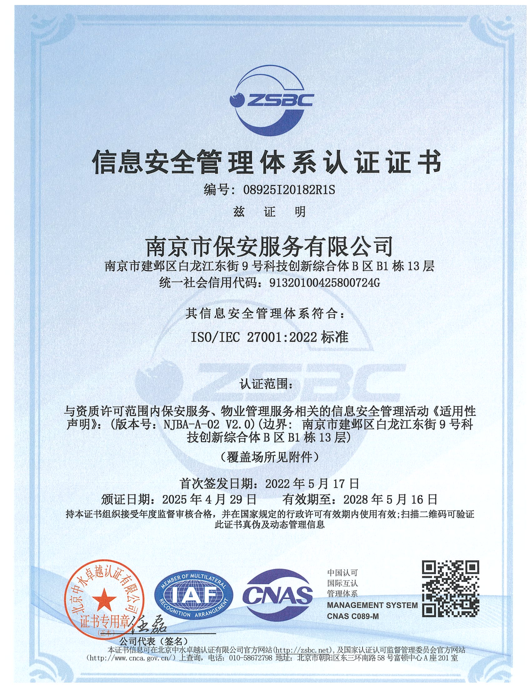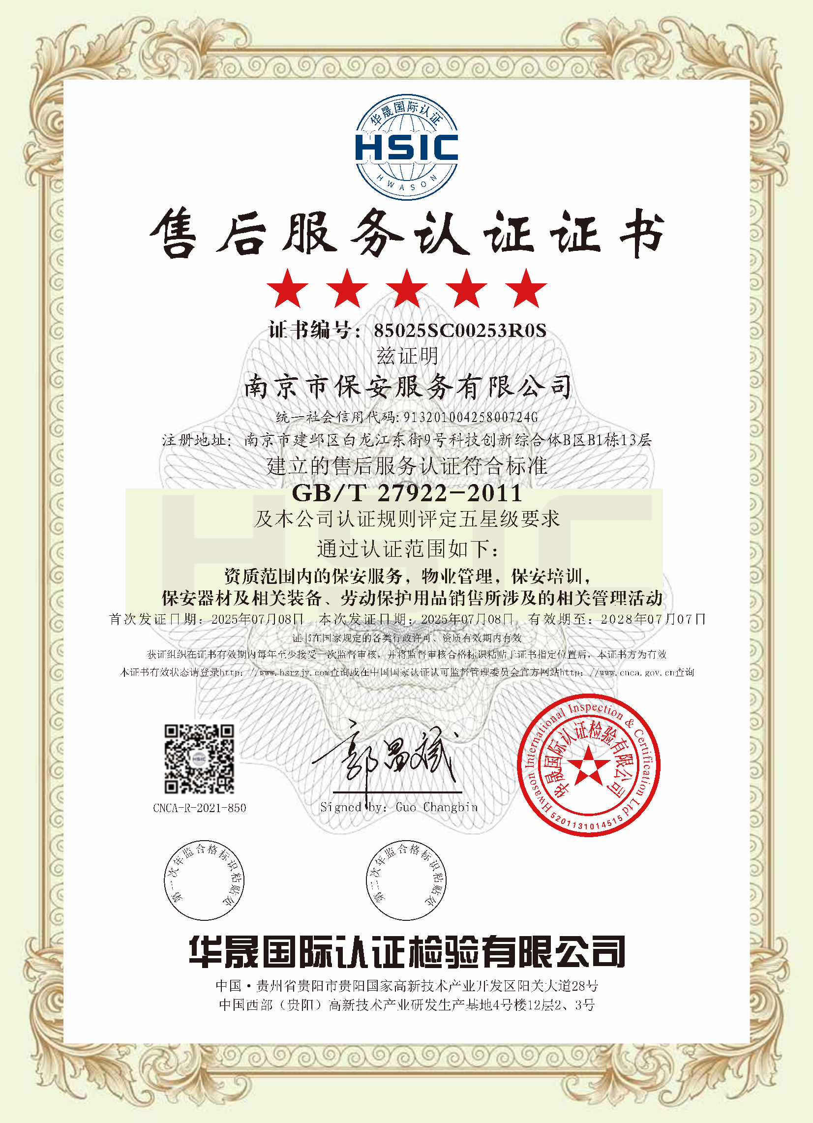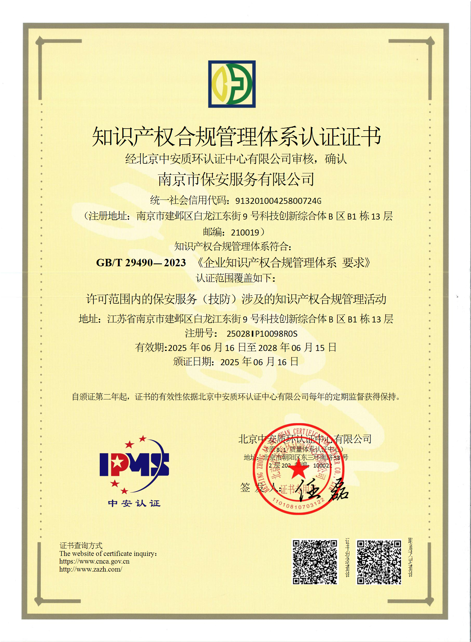 祝賀:南京市保安服務(wù)總公司通過企業(yè)誠信管理體系認證和企業(yè)社會責任管理體系認證[07-16]